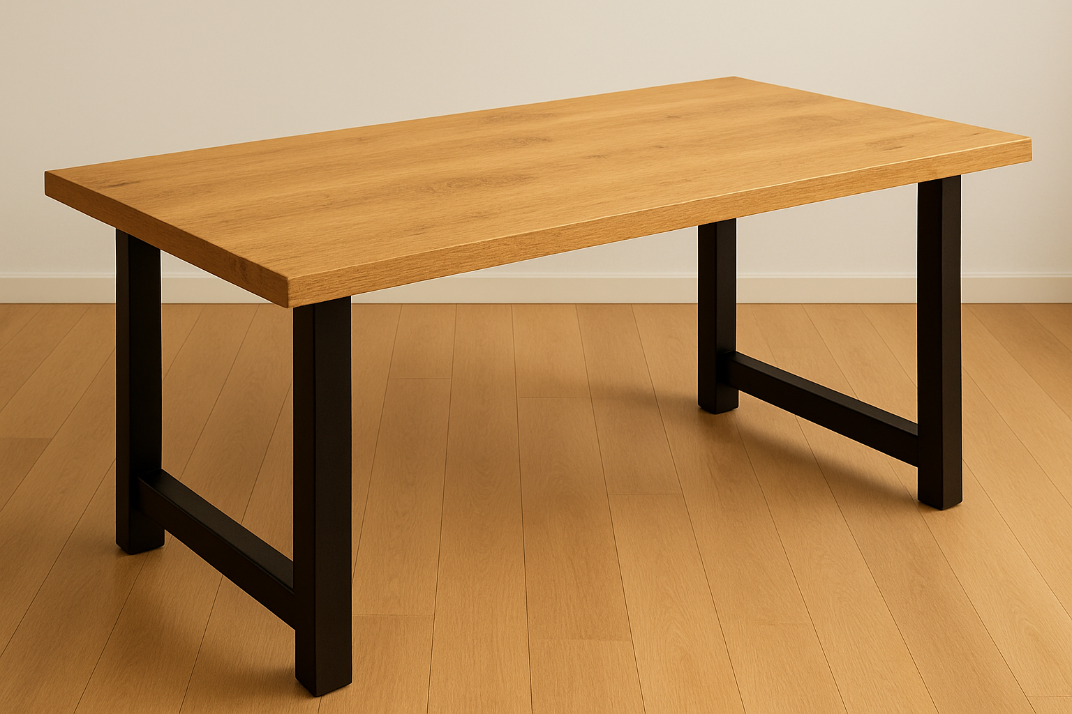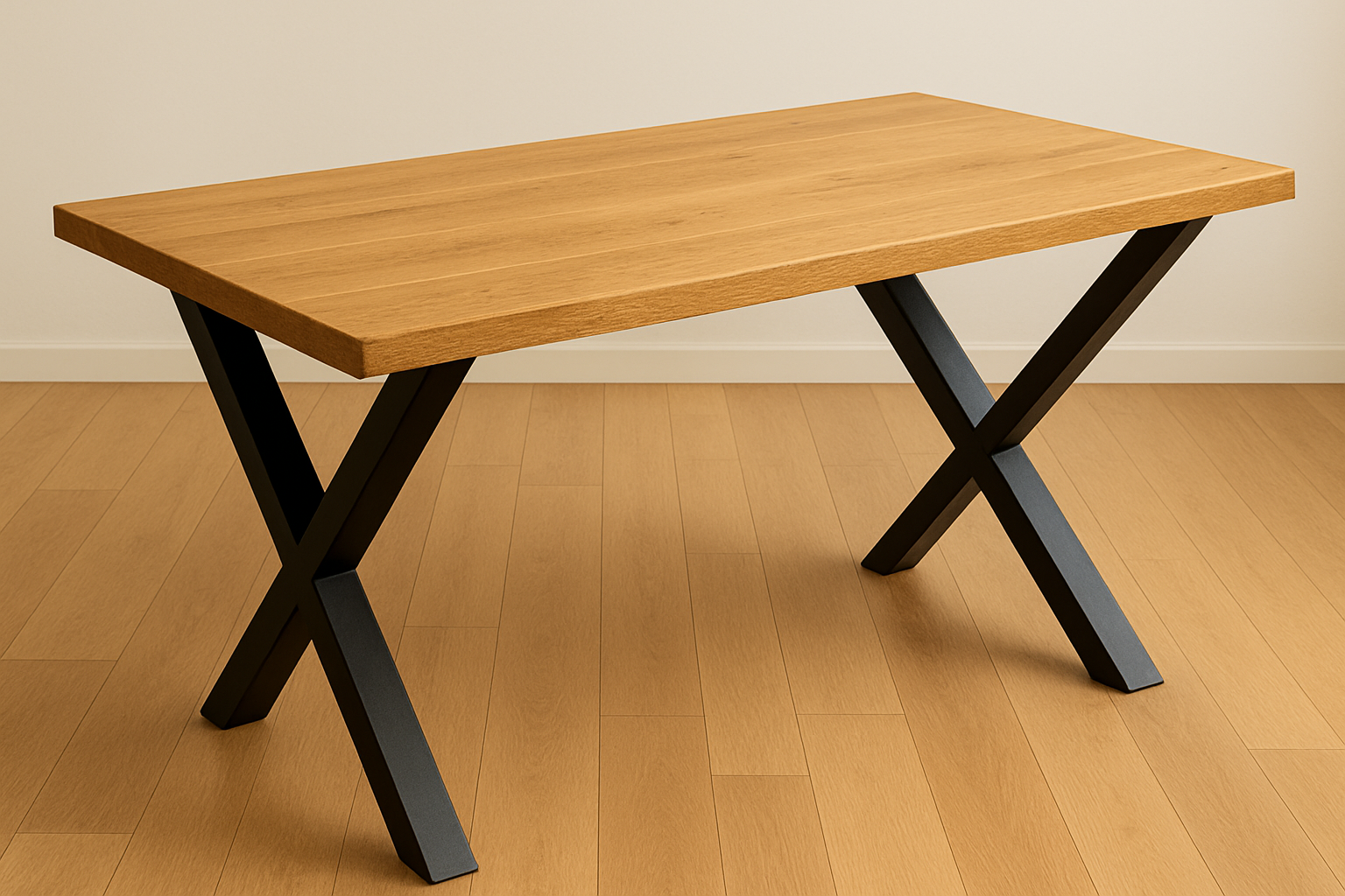 28 mm vastag tömör tölgy asztallap, masszív fém lábakkal